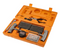 Coming in a compact, high visibility carry case, the Speedy Seal Kit Series II includes all the components necessary to repair tubeless radial or cross-ply tires, without removing the tire from the vehicle or rim. A pencil-type tire gauge with dual chuck makes setting pressures a snap, while a spring steel insertion needle and hardened reamer tool allow fast tire repairs.